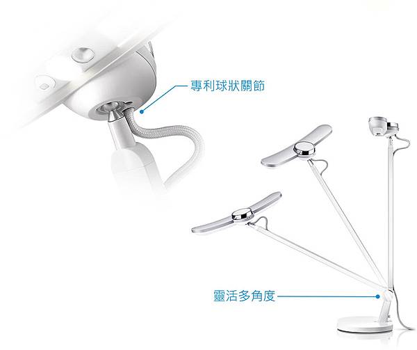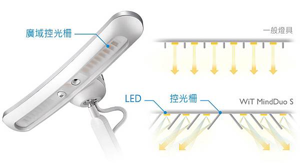 檯燈有創新燈頭縮小技術和廣域控光柵,燈光均勻又舒適!