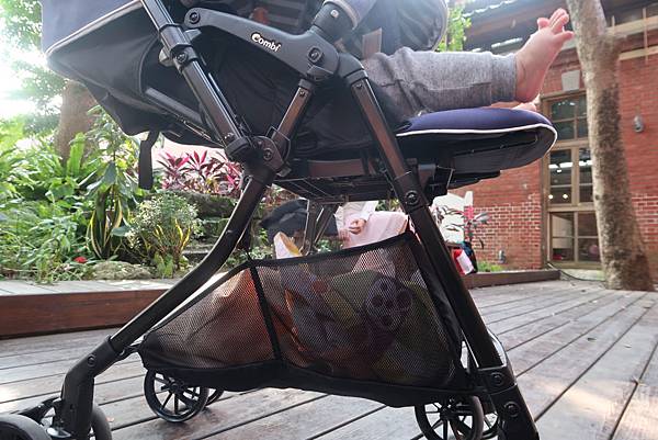 帶寶寶出門東西當然一大堆,Combi Loca手推車有超大口的置物籃,就算收車也不用把東西拿起來,東西拿進拿出也非常方便,因為他開口超大的。