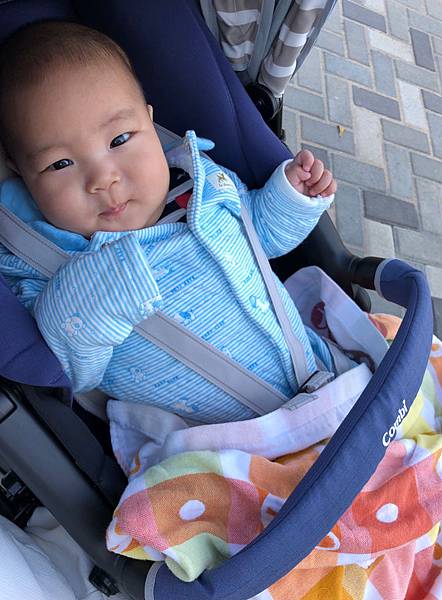 大太陽更不用說了,通常推出去如果罩子沒關起來,寶寶會一直看著大太陽不舒服,Combi Loca手推車的全罩遮陽蓬還有抗UV,不怕寶寶曬傷或是傷害眼睛。