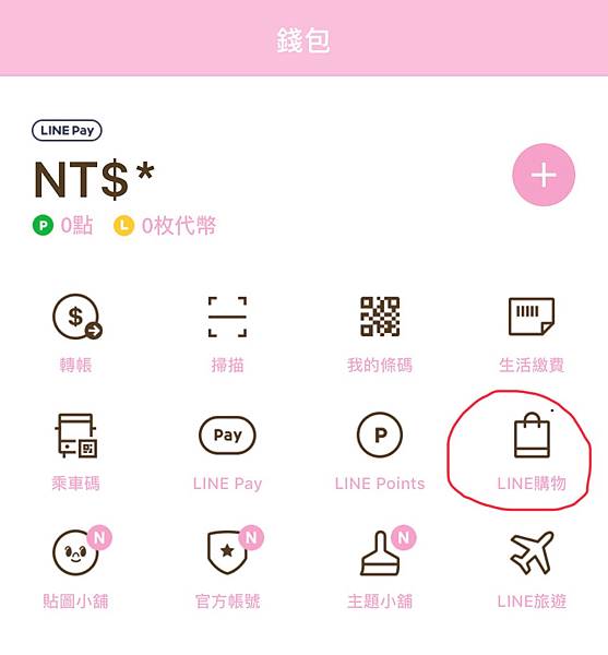 打開LINE以後進入右下角的錢包,進入錢包以後裡面是這樣