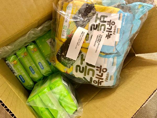打開以後這是我買的當然都是寶寶的東西~寶寶海苔~寶寶濕紙巾等等