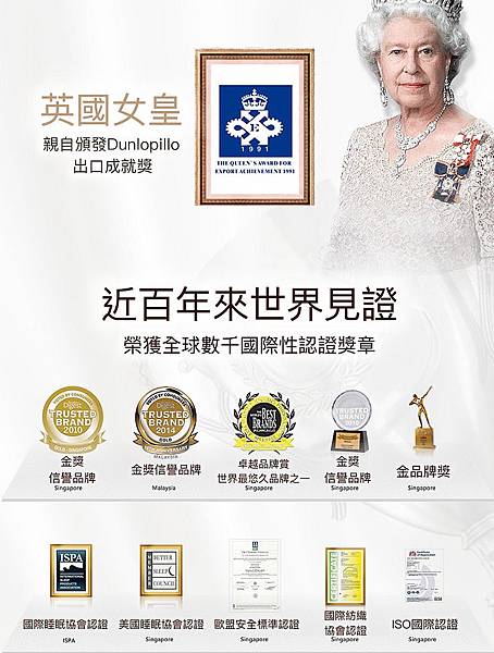 Dunopillo獲得英國女王親自頒授獎章的英國國寶品牌