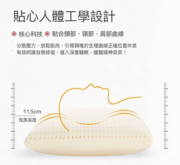 工學枕:適合各身形、喜歡側睡或趴睡、喜歡一般高度枕者
