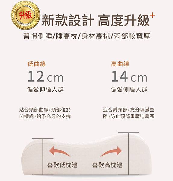 新款的無論是一般款還是人體工學款枕高都有來到14公分