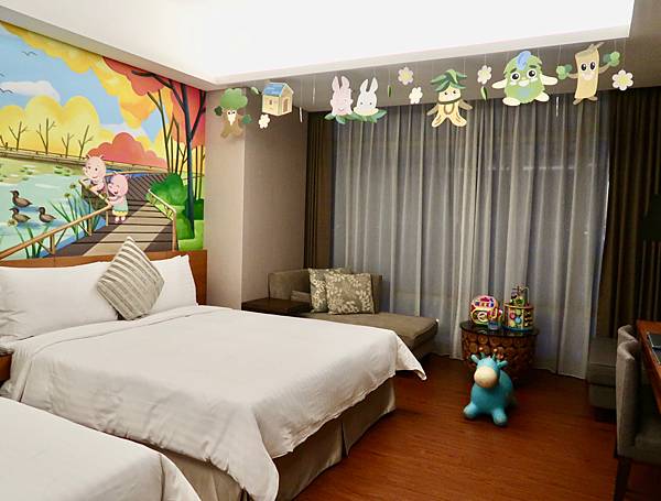 房間裡面飯店有準備簡單的玩具、跳跳馬、好幾本兒童書籍