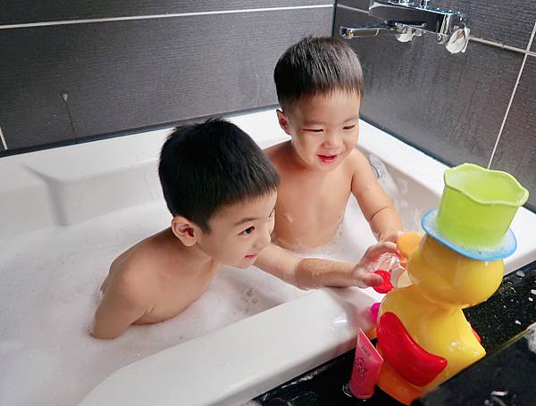 泡澡時間飯店有準備小孩的盥洗用品,還有洗澡玩具