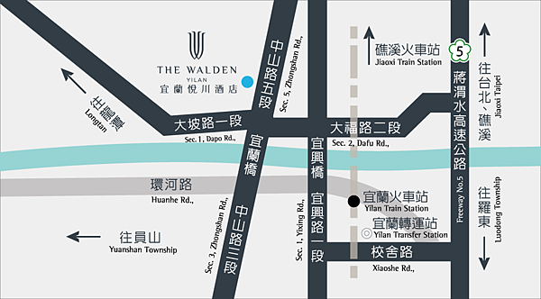 宜蘭悅川酒店靠近宜蘭火車站、宜蘭轉運站,有接駁車接送,可以上網查詢接駁時段(須提前預約),但開車還是比較方便,有免費停車場