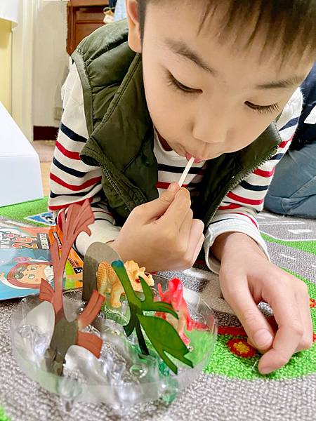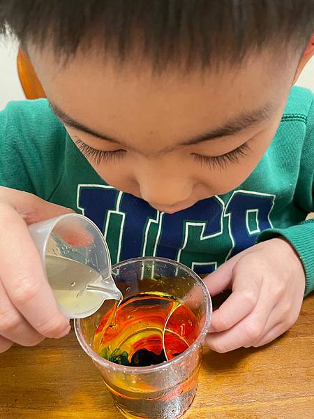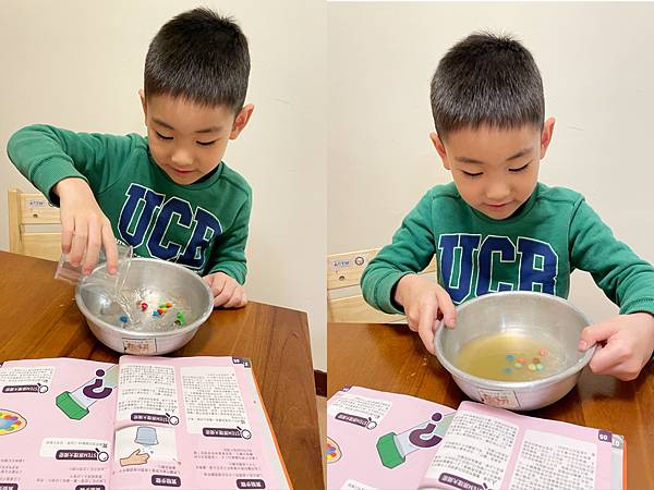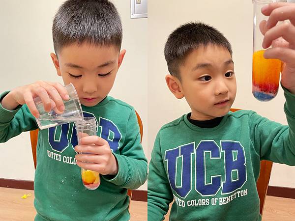 一直大聲說太神奇了!媽媽我也覺得這個實驗很有趣耶!每個家裡面都會有的材料,原來可以這麼玩~