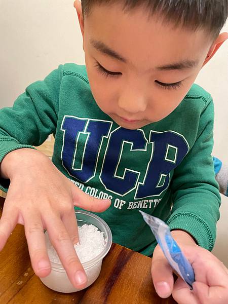 利用人造雪粉跟水,觀察人造雪的變化