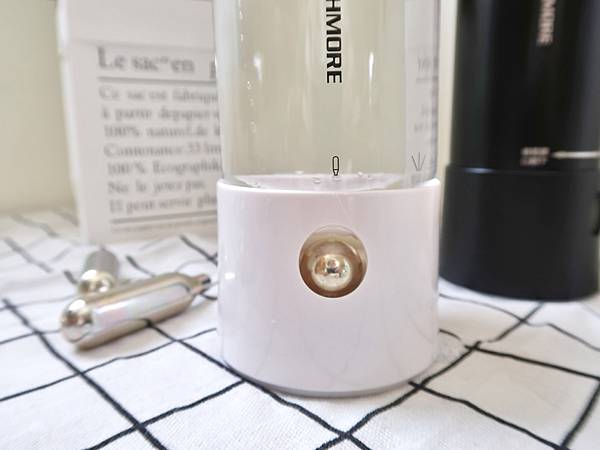 氣泡水隨手瓶的氣泡出口僅有 0.5mm,讓二氧化碳能夠成為更小的分子,可以和飲品完整融合