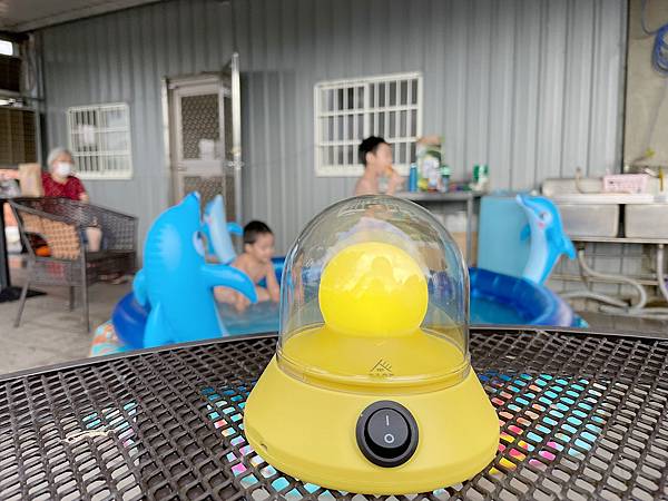 玩水的時候防蚊液也擦不上去,幽浮驅蚊神燈在這些狀況就很好使用,物理驅蚊對小孩無害,簡單的擺在孩子身邊,我可以翹二郎腿放心地讓他們嬉戲
