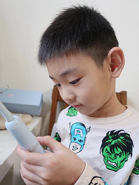 我問哥哥刷起來什麼感覺,他說第一次使用有點不習慣癢癢的,用過幾次之後問他,他說就像在按摩,越刷越舒服唷!很會享受嘛!