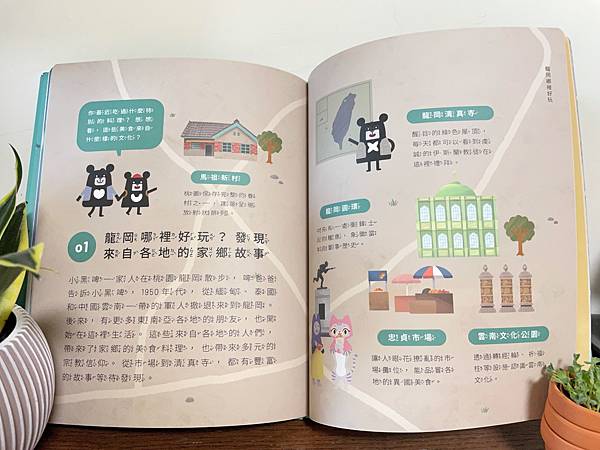 四本繪本,由北到南,分別是“桃園篇:過節日“、”彰化篇:逛老街“、”高雄篇:遊大港“、”台東篇:找石器“
