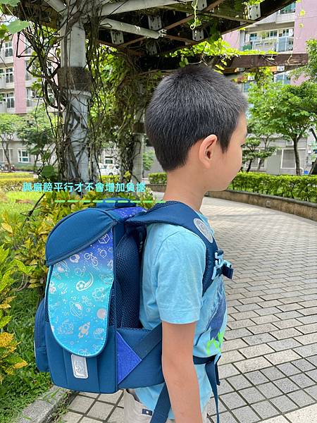 跟大家說,正確的背書包要背部貼合,與肩膀平行,才能分散肩背的重量唷