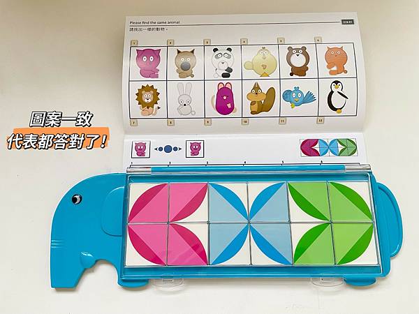 完成配對以後,對照右上的大象拼版解答圖案 就完成了!