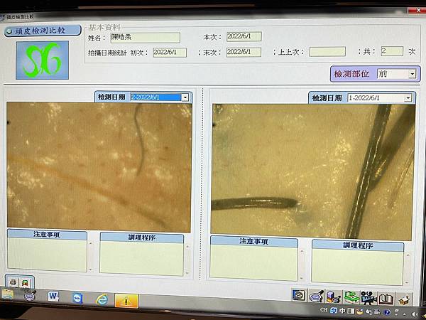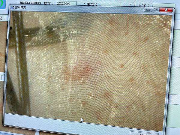 電腦頭皮偵測器,照了一下子,馬上看到有點小過敏的地方和有點黴菌?