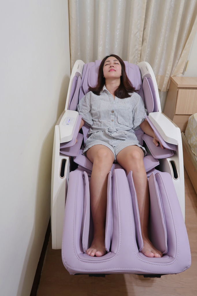 輕輕往下踩,伸縮有感,完全符合一家大小都可以坐的按摩椅