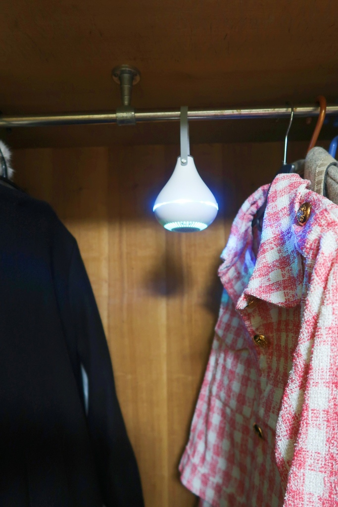 除濕/殺菌機:燈光是uvc,穿過的衣服可以殺菌。機器內可放入除濕劑,用來調整衣櫃和衣服的濕度