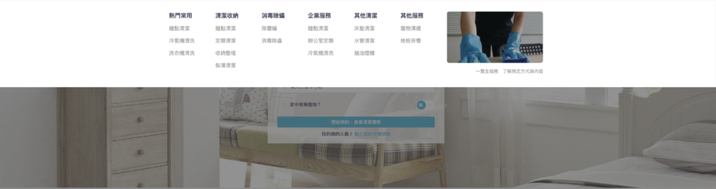 首先進入首頁,可利用上方導覽列,直接選擇找打掃或全部服務