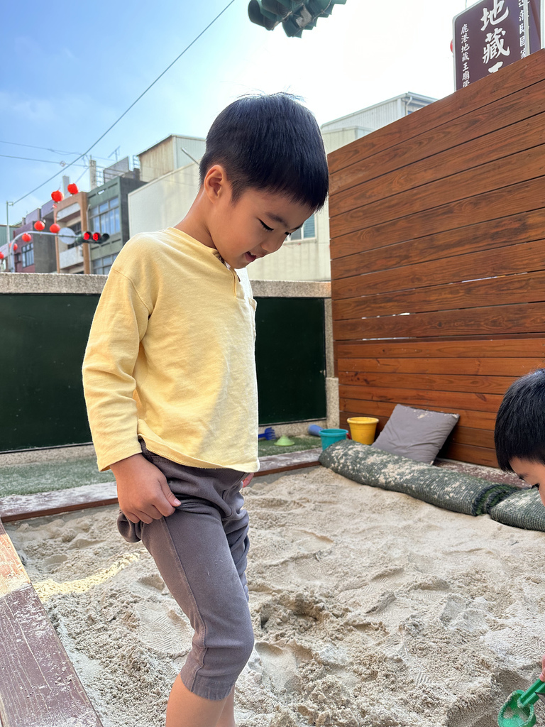 飯店門口有一小區沙堆