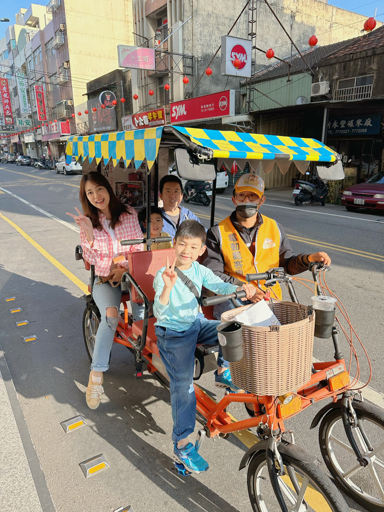 可以來鹿港老街騎著三輪車