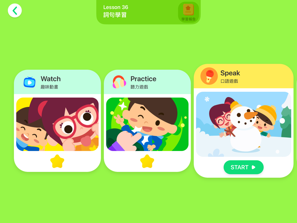 搭配遊戲闖關和互動,孩子越玩會越有成就感,可以自由解鎖課程,上完一堂解鎖下一堂,學習不卡卡