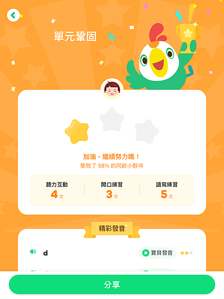 學習完畢還會生成學習報告,幫助媽媽瞭解孩子的學習進度