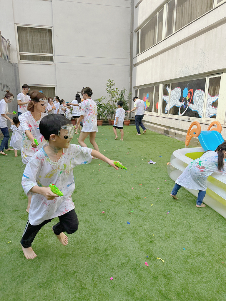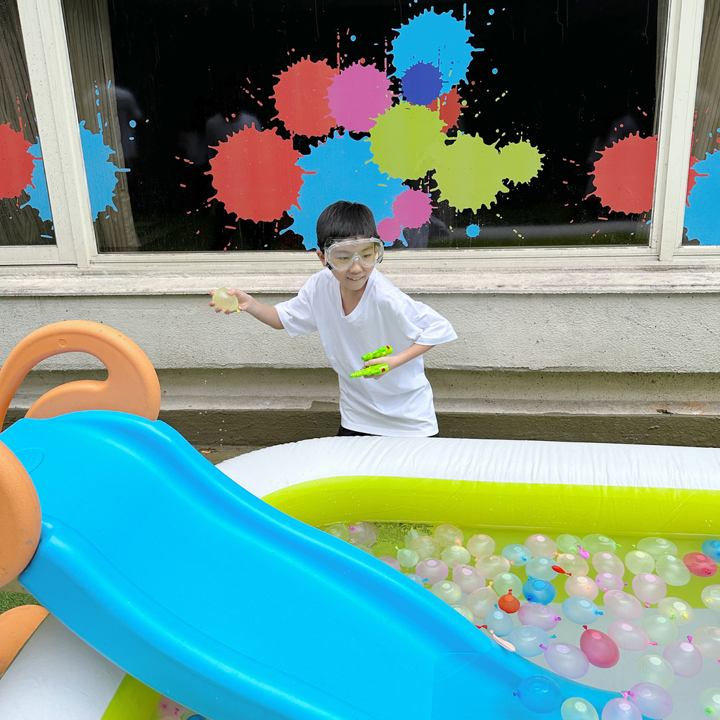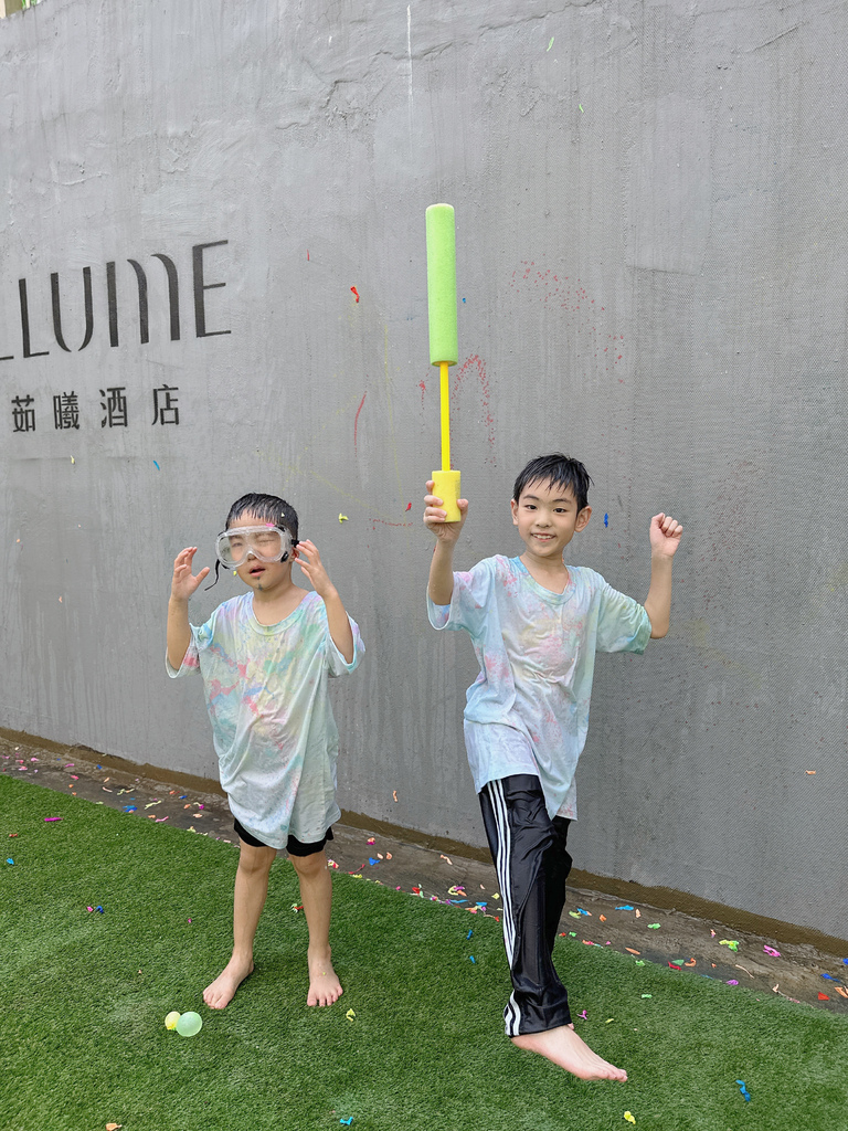換上白T,水槍和水球裡裝滿顏料,兄弟倆簡直是玩到瘋掉