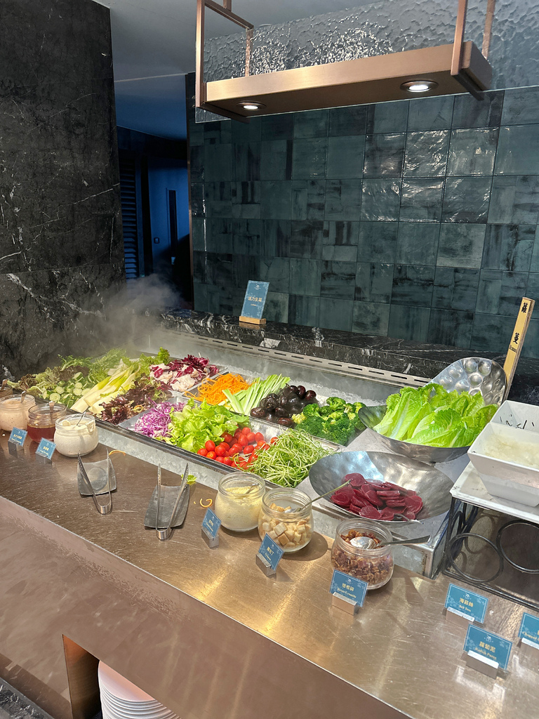 有現做歐姆蛋,優格,沙拉,各式麵包,中式粥品、湯麵