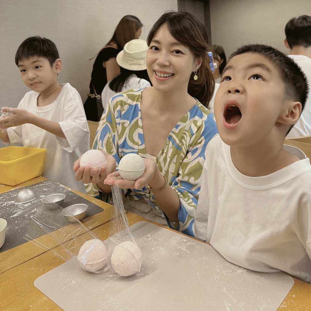 現場老師很有耐心,看到沐浴球過過程的每個變化,大人小孩都覺得好好玩喔~