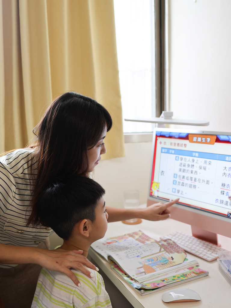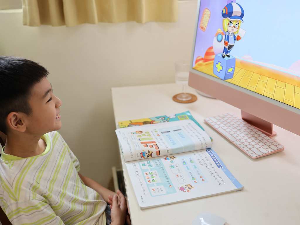 有空時我會在一旁陪他上課