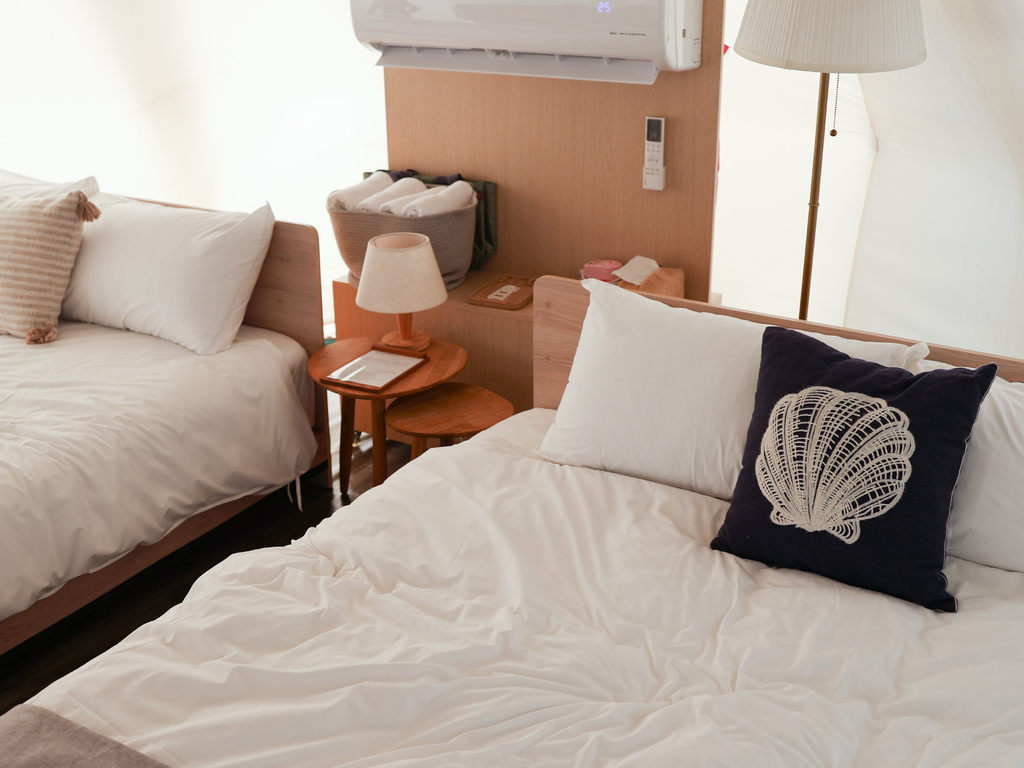 帳篷裡有冷氣,也備有電風扇,夏天來也不怕熱喔!
