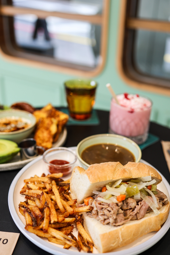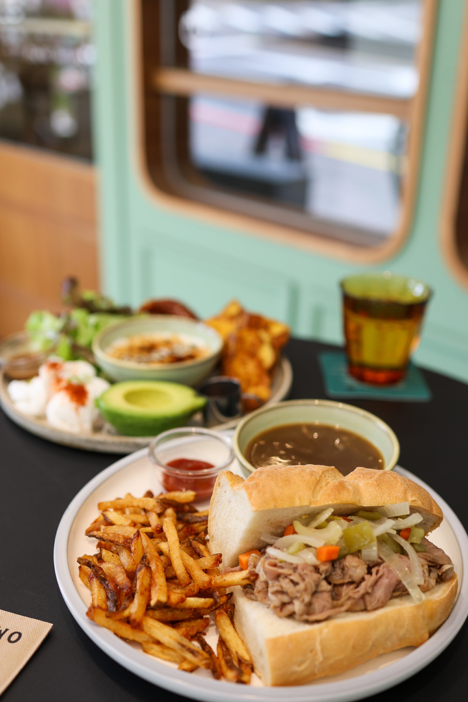 芝加哥三明治有點微辣,一旁可以左牛肉湯,一口湯一口三明治,實在太享受