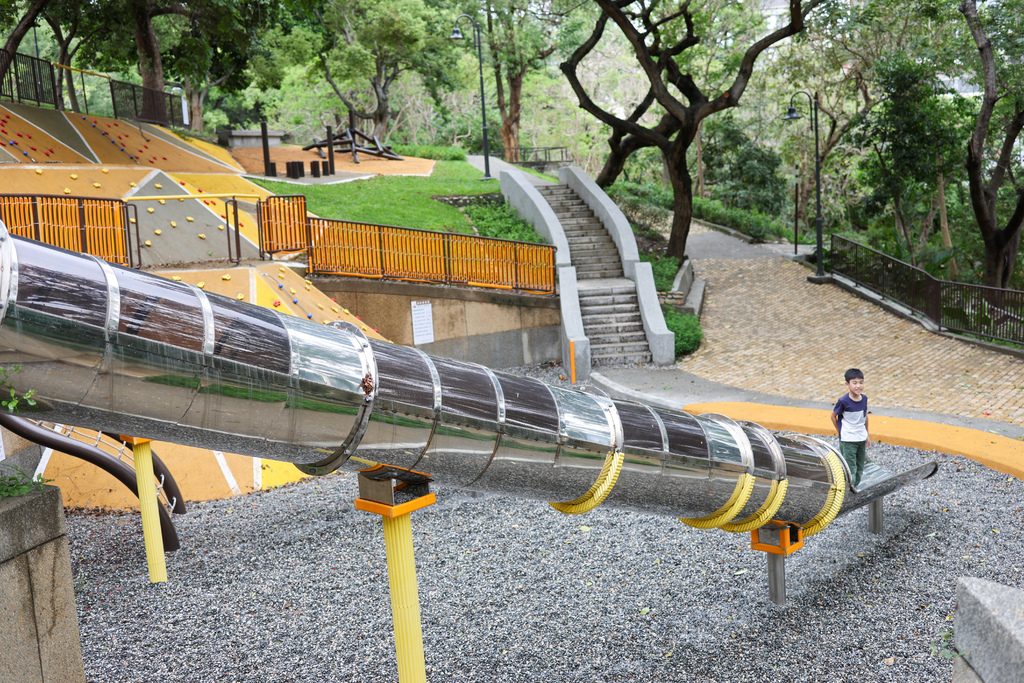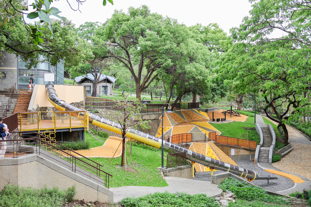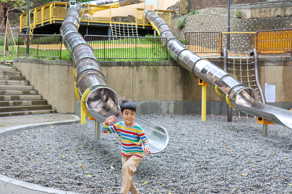 親子探索區,溜滑梯高低差達8.5公尺的