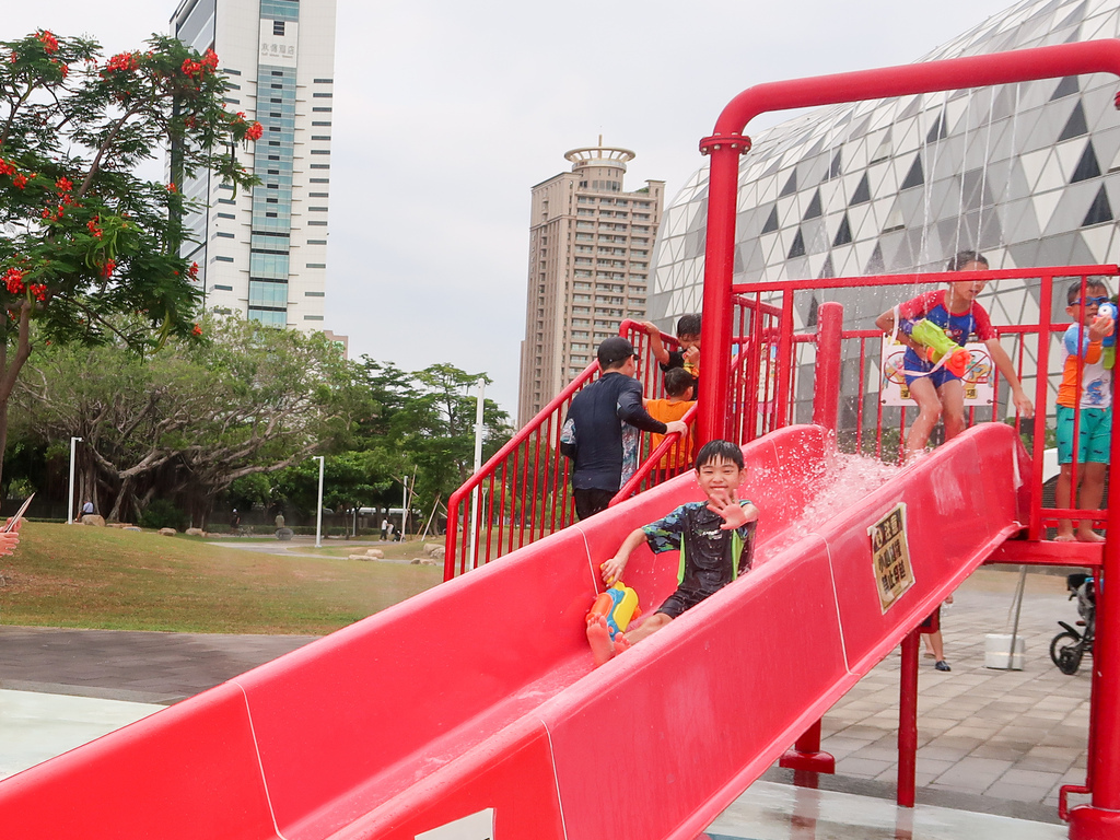小孩來怎麼能沒去免費戲水 的『高雄星光水岸公園戲水區』