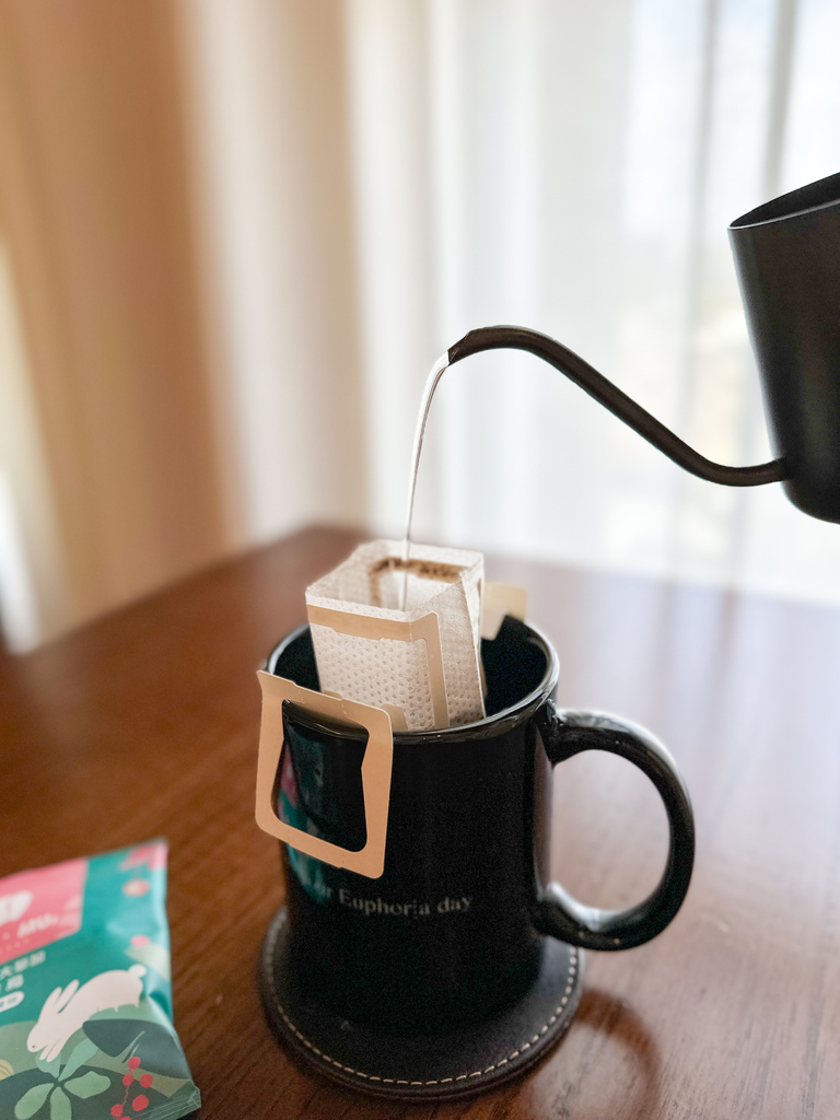 邊泡爸爸邊嚷嚷,妳有在飯店玩過手沖嗎?也太好了吧XD