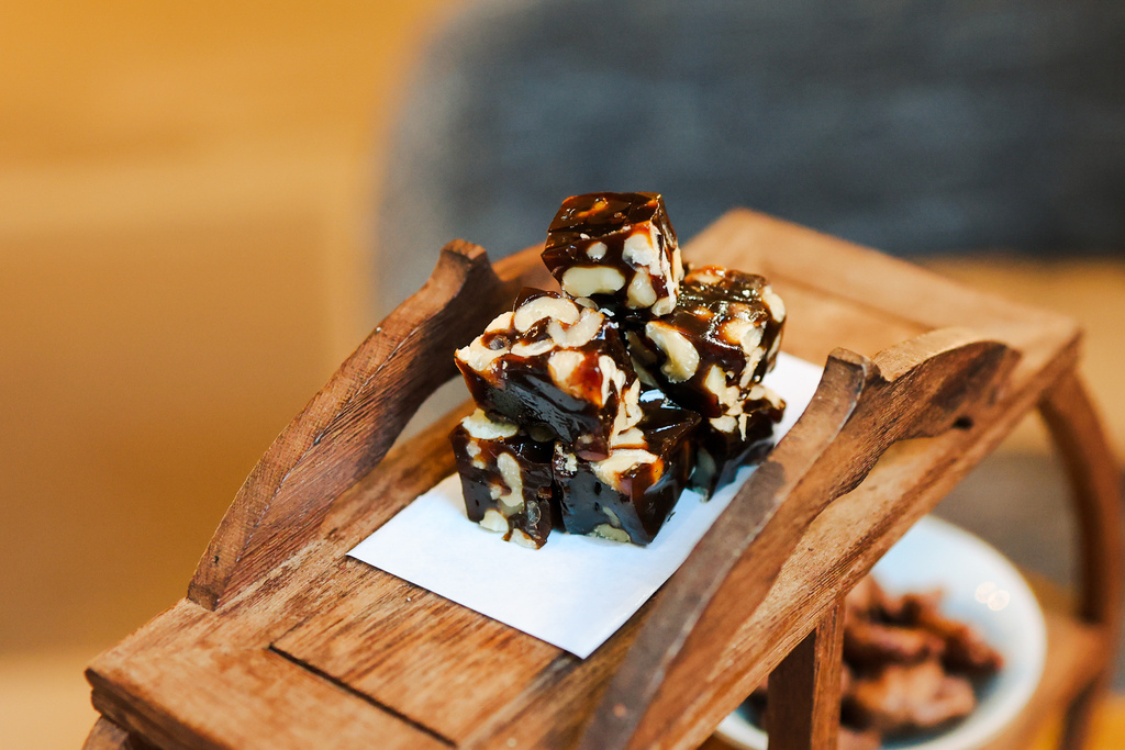 上頭的紅棗糕不黏牙,胡桃口味開胃爽口,邊品茶邊吃一口小點