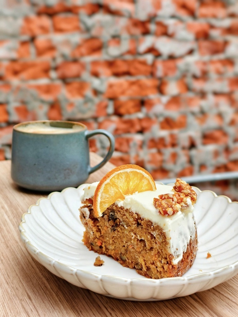 我們點了紅蘿蔔蛋糕:奶霜帶點酸味,搭配濕潤的蛋糕體,口感剛剛好!