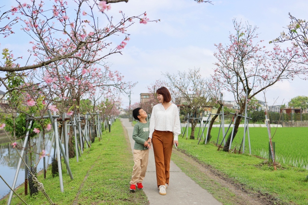 宜蘭羅莊櫻花步道,無障礙空間,走起來超輕鬆,沿線種植超過 1000 株櫻花樹,超浪漫