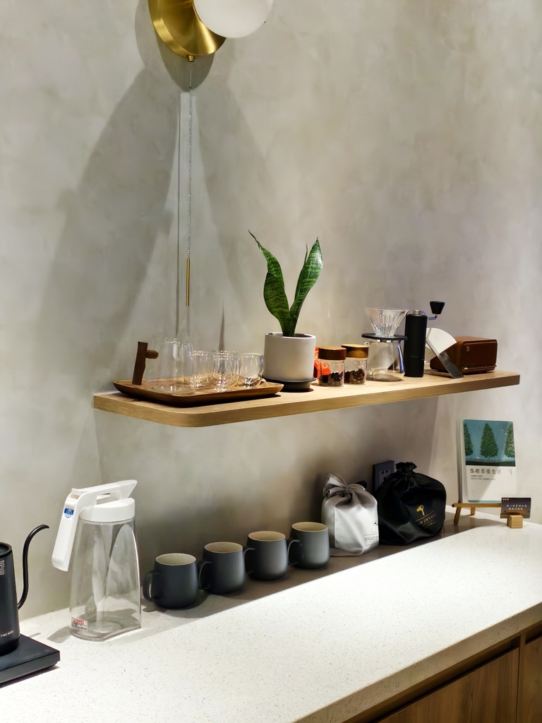 房間內還貼心準備了簡約風的咖啡角落,有濾掛壺、手沖壺、馬克杯、茶具通通擺好好,還有小盆栽裝飾,療癒到不行