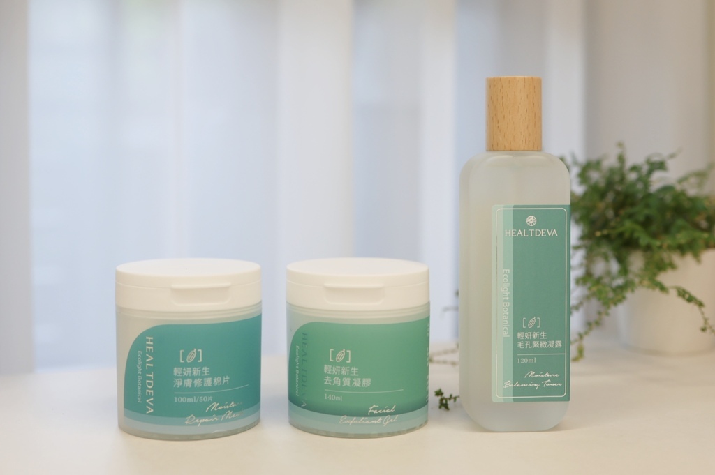 『輕妍新生毛孔緊緻凝露』、『輕妍新生去角質凝膠(升級版)』、『輕妍新生淨膚修護棉片』