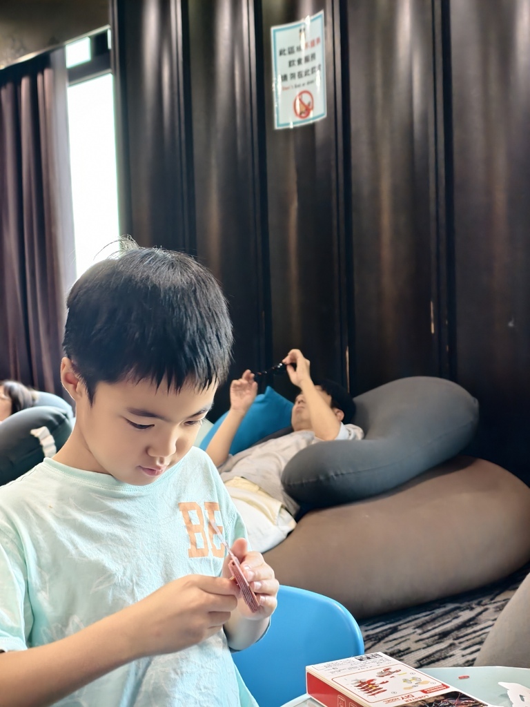若想要放鬆,休閒中心有懶骨頭沙發、桌遊和DIY,爸媽也能偷得片刻悠閒
